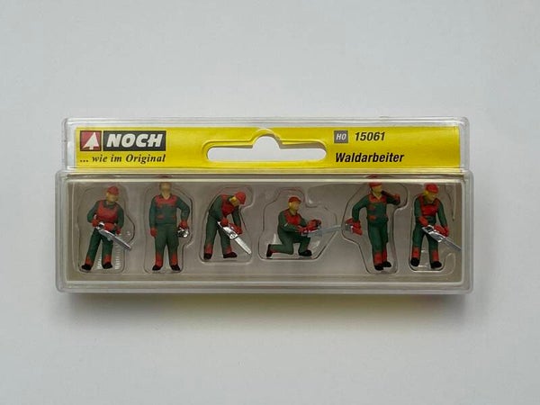 Unser Set enthält sechs Forstwirte in typischer Schutzkleidung. Forstwirte führen alle Tätigkeiten in der Waldarbeit aus, von der Begrünung neuer Waldbestände bis zur Holzernte. Unsere Figuren tragen grün-orangefarbene Schutzkleidung und orangefarbene Helme. Die Arbeiter sind mit Kettensägen ausgerüstet und haben typischen Arbeitsposen.