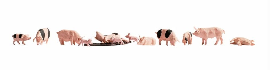 Das Set beinhaltet neun Schweine und drei Ferkel für die Spur H0 (Maßstab 1:87, ca. 2 cm hoch).