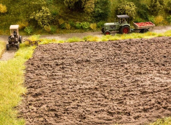 Die Natur+ Serie von NOCH umfasst einen naturrealistischen Acker aus dem bekannten Struktur-Hartschaum. Die Ackerkrumen sind vorbildgerecht aufgeworfen, als ob der Acker gerade eben erst gepflügt wurde. Zur Dekoration der Szenerie sind außerdem 10 Grasbüschel enthalten.