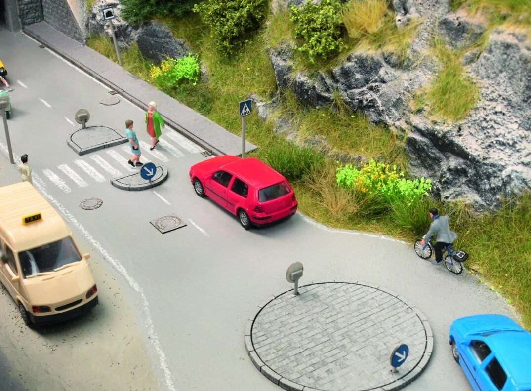 Das NOCH Laser-Cut mini "Verkehrsinsel-Set" finden sich ideal in einer realistisch ausgestalteten Verkehrslandschaft wieder. Vorbeibrausende Autos, hupende LKWs, Menschen auf dem Fahrrad und auch Fußgänger sind hier unterwegs. Hier ist viel los und Chaos vorprogrammiert. Doch das "Verkehrsinsel-Set" bringt Ordnung mit sich - ein Zebrastreifen führt die Fußgänger sicher über die Straße, die Autos halten sich an die Straßenschilder und schon ist das Chaos beseitigt. Um auch jeder Modelllandschaft im Verkehr Ordnung zu erhalten eignet sich die "Verkehrsinsel-Set" perfekt. Bringen Sie diesen realistisch nachgestalteten Laser-Cut mini mit auf Ihre Landschaft und sorgen Sie für einen sicheren Verkehr.