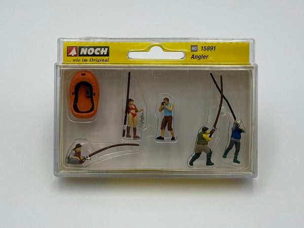 Angeln ist ein besonders schönes Hobby. Vor allem am Wochenende kann man als Angler tolle Ausflüge an Seen und unberührte Flussufer machen. So können Angler gleichzeitig die Natur genießen und Fische fangen. Das Abendessen ist somit auch schon gesichert. Mit dem neuen NOCH Figurenset erhalten Sie 5 realistische Figuren für einen Anglerausflug und ein oranges Schlauchboot, die jeden unberührten See oder Fluss zu einem unvergesslichen Erlebnis machen.