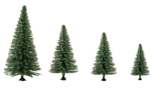 Die Kunststoff-Spritzlinge der Laubbäume sind handkoloriert und mit einem eigens dafür entwickelten, realistischen Flock belaubt. Die Tannen sind mit einem speziellen, naturgetreu wirkenden Nadelflock versehen.