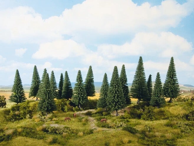 Die "Tannen" eignen sich ideal, um hochwertige Landschaftsszenen in einer Modelllandschaft realgetreu nachzugestalten. Wälder gibt es in der realen Natur sehr viele und auch auf einer Modelllandschaft dürfen diese nicht fehlen. Ob Laubbäume, Fichten, Lärchen oder mediterrane Bäume - die unterschiedlichsten Baumarten lassen eine Landschaftsszene noch wirklichkeitsgetreuer und idyllischer wirken. Die Waldtiere suchen Schutz unter den hohen Bäumen und die Menschen spazieren bei schönem Wetter durch den dichten Wald. Gestalten Sie mit den "Tannen" unter den Standard-Bäumen idyllische Naturszenen nach und sorgen Sie für einen echten Hingucker auf Ihrer Anlage.