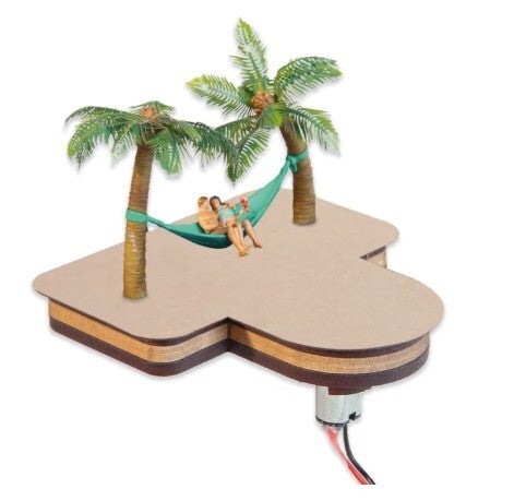 Das wunderbare Modell besteht aus zwei Palmen mit super-realistischen, lasergeschnittenen Palmblättern und einer Hängematte, auf der sich ein Liebespaar befindet. Palmen, Hängematte und die Figurenmodelle sind komplett montiert. Die