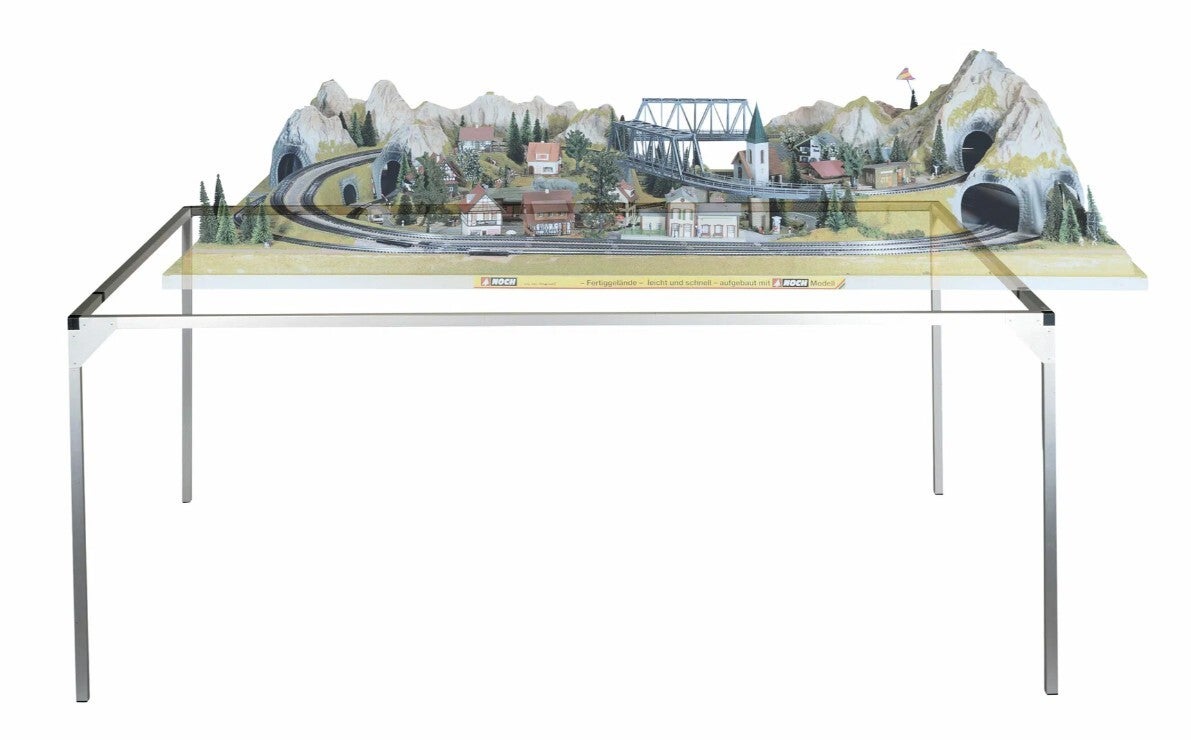 Wenn Sie Ihrer Modellbahnanlage festen Stand geben wollen, ist das NOCH Alu-Zargensystem ideal. Das optisch attraktive Alu-Zargensystem ist ein sehr stabiles und dennoch leichtgewichtiges Standsystem aus eloxierten Aluminium-Profilen. Es kann sowohl unter NOCH Fertiggelände als auch unter Ihre individuelle Anlage montiert werden.