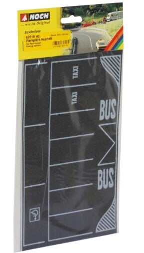 Eine Packung "Parkplätze" beinhaltet zwei Straßen-Folien. Die eine Folie ist – wie auf dem Bild abgebildet – mit Straßenmarkierungen bedruckt. Die andere ist neutral und kann damit beliebig zugeschnitten und eingesetzt werden.