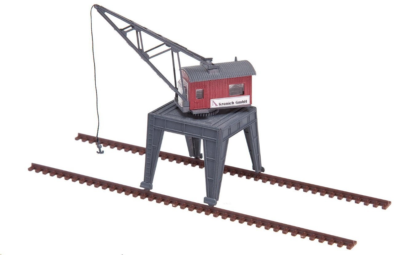 Kleiner Portalkran für den Güterumschlag Straße/Bahn oder Bahn/Schiff. Das Kranoberteil ist manuell drehbar.