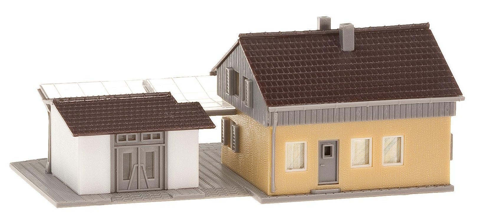 Dieser Bausatz enthält: 60 Einzelteile in 4 Farben, Fensterteile, 1 Gardinenmaske, 1 Deko und 1 Bauanleitung. Verwenden Sie zum Basteln FALLER - Plastikkleber.