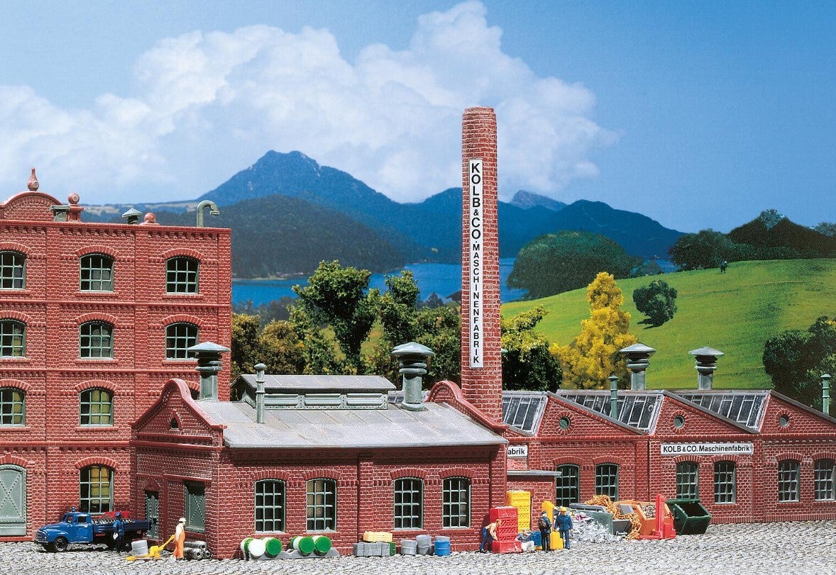Mit großem Fabrikschornstein. Passend zu den Gebäuden Art. 222201 und Art. 222203.