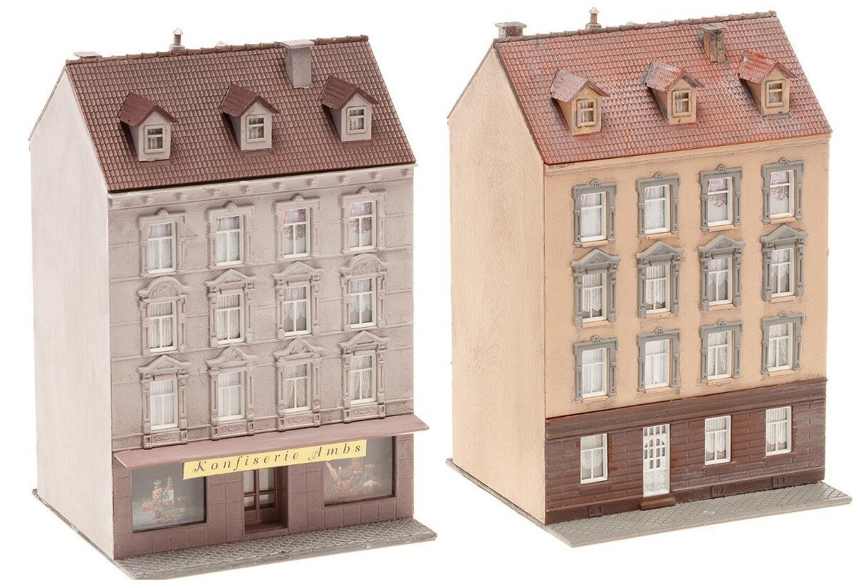 Dieser Bausatz enthält: 100 Einzelteile in 8 Farben, Fensterfolie, 2 Gardinenmasken und 2 Bauanleitungen. Verwenden Sie zum Basteln FALLER - Plastikkleber.