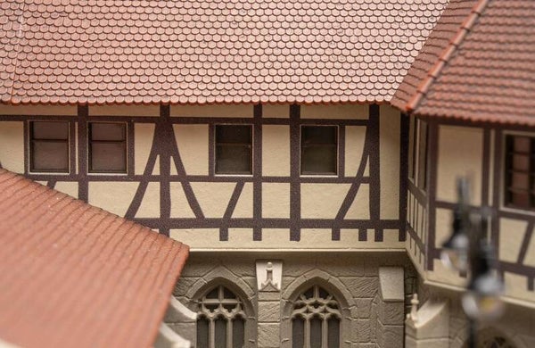Modellbauromantik. Von der alten, überwiegend im gotischen Baustil erbauten Abtei stehen noch der Südflügel mit dem Sommerrefektorium und der Westflügel mit seinen romanischen Rundbögen. Im teilweisen erhaltenen Kreuzgang ist das Brunnenhaus mitsamt dem Brunnen zu finden. Das historische Mauer- und Fachwerk, die abwechslungsreichen großen Dachflächen in Ziegeloptik sowie die offene Turmspitze sind besondere Blickfänge. Das Modell bildet den Mittelpunkt vieler Landschaftsideen.