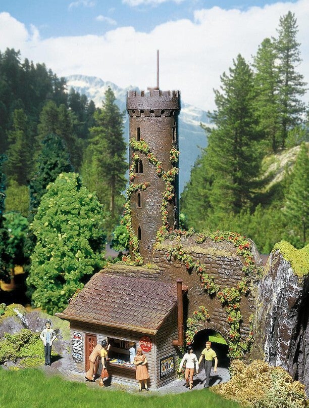 Aussichtsturm der mit seinem angebauten Kiosk als Ausflugsziel außerhalb einer Ortschaft stehen sollte. Leicht zu bauendes Modell mit geringem Platzbedarf. Speziell für den Hintergrund geeignet.
