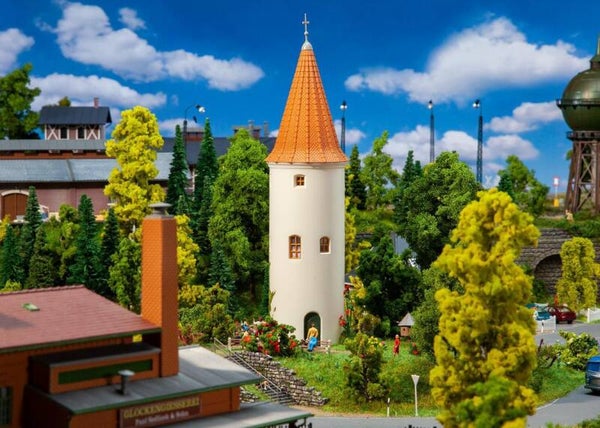 Lass dein Haar herunter! Zylinderförmiger Turm mit spitzem Kegeldach, Tür und kleinen Fenstern, z. B. für die Märchendarstellung oder als Wehrturm einer Altstadtbefestigung einsetzbar.