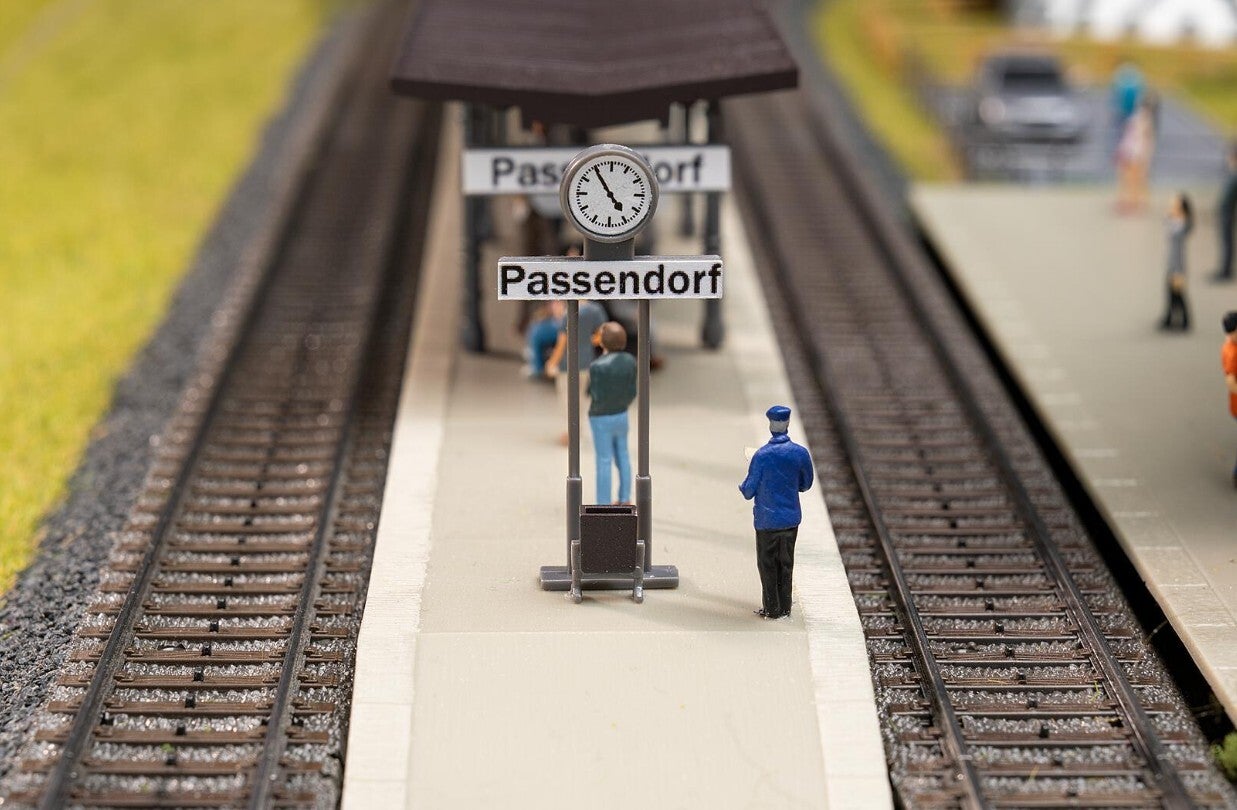 Bitte einsteigen, der Zug fährt ab! Dieses Set lässt Reisefieber aufkommen und mit dem detailreichen Bahnhof und einem ausgestalteten, überdachten Bahnsteig, bevölkert mit geschäftigem Bahnpersonal, erwacht das Treiben am Gleis zum Leben. Ein authentisches, steinernes Stellwerk rundet die Szenerie ab. Zusammen ist alles perfekt geeignet, um die Modellbahn zu verschönern und vielseitig zu gestalten. Alles bereit machen für die Abfahrt in eine Miniaturwelt voller Abenteuer! Inhalt: Bahnhof, Stellwerk, Bahnsteig und Bahnpersonal.