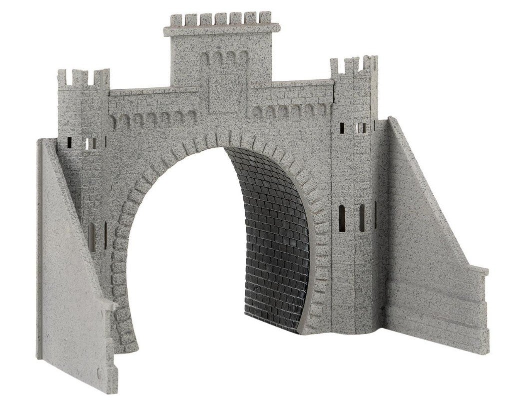 Hellgraues Tunnelportal für die Modelleisenbahn der Epoche I. Die Seitenflügel sind in beliebigem Winkel baubar.