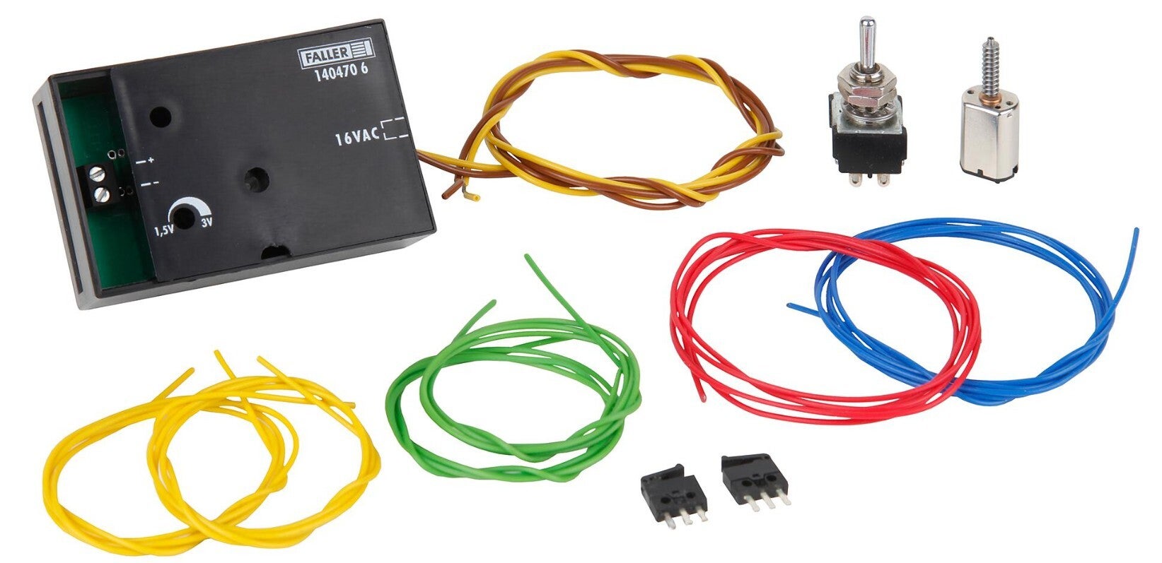 Antriebseinheit für die Modelle »Moderner Aufzug mit Antriebsteilen«, Art. 120297, »Klinik«, Art. 130809 und »Parkhaus«, Art. 130810. Ermöglicht das Auf- und Abfahren des Aufzugs sowie das Stoppen an jeder beliebigen Position. Inhalt: - 1 x Gleichrichterplatine - 1 x Motor mit Schnecke - 1 x Wechselschalter - 2 x Endschalter - Litzen.