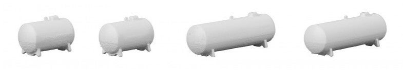 Sowohl in ländlichen als auch industriellen Umgebungen sind diese vier Gastanks in verschiedenen Größen vielseitig einsetzbar und bieten eine vielfältige Gestaltungsmöglichkeit auf einer Modelleisenbahnanlage oder auf einem Diorama.