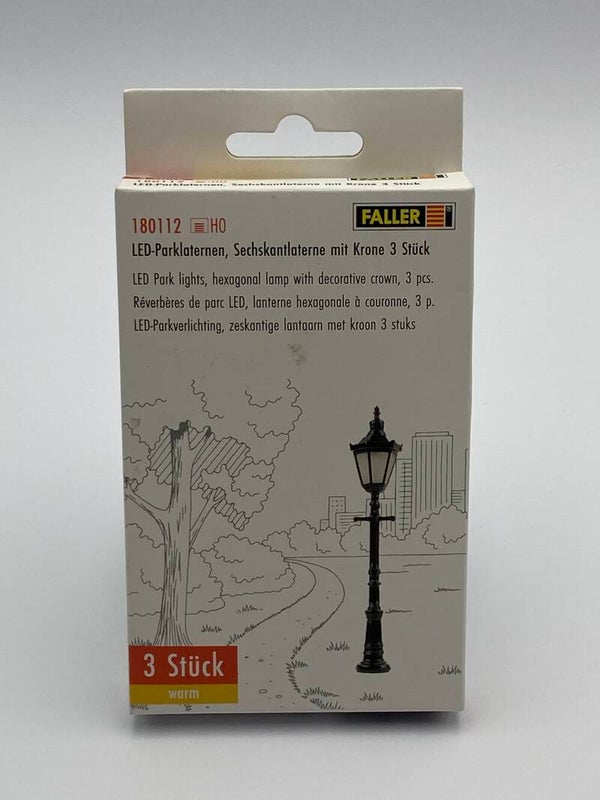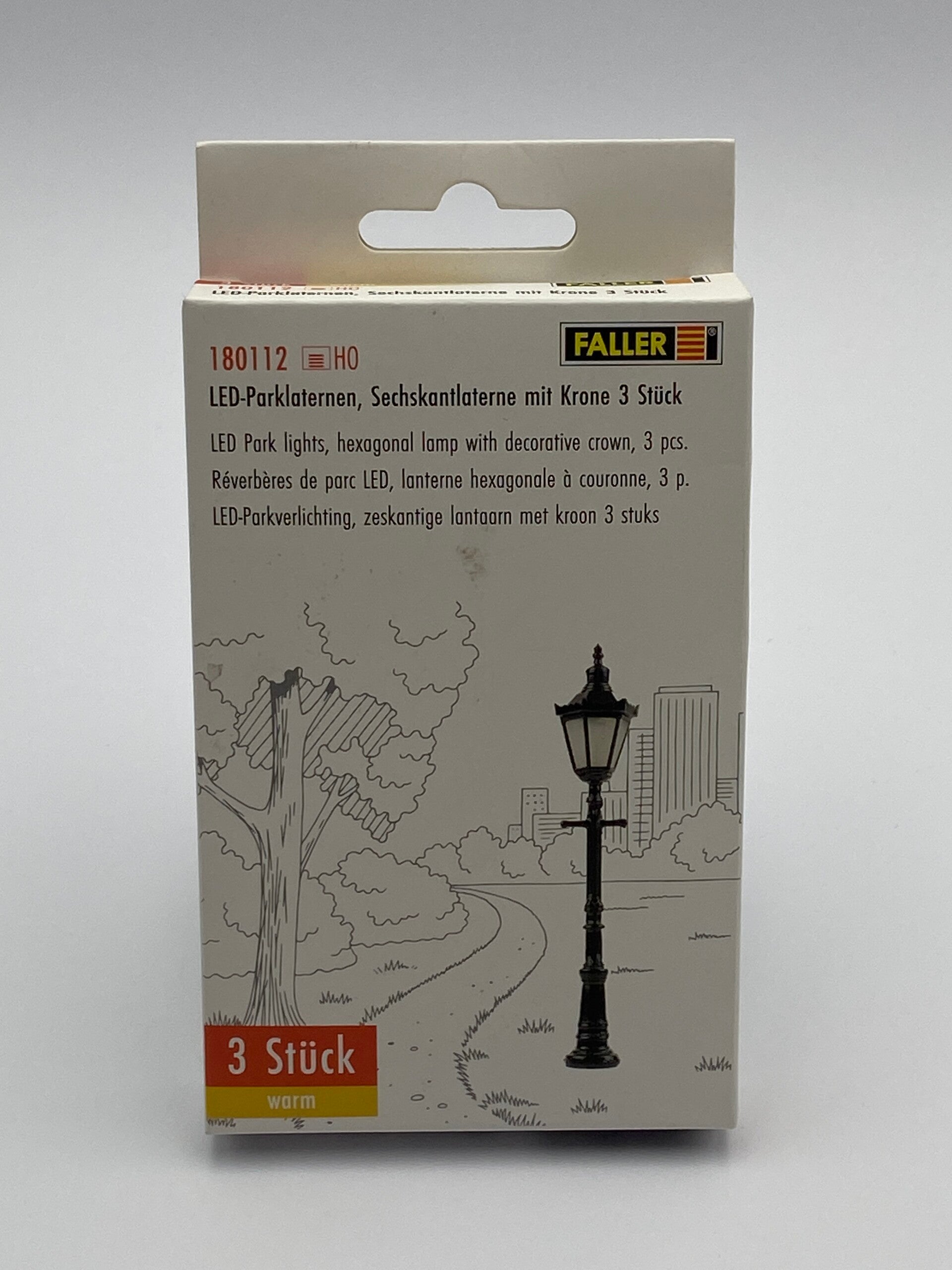 Faller 180112 LED-Parklaterne, Sechskantlaterne mit Krone, warmweiss, 3 Stück