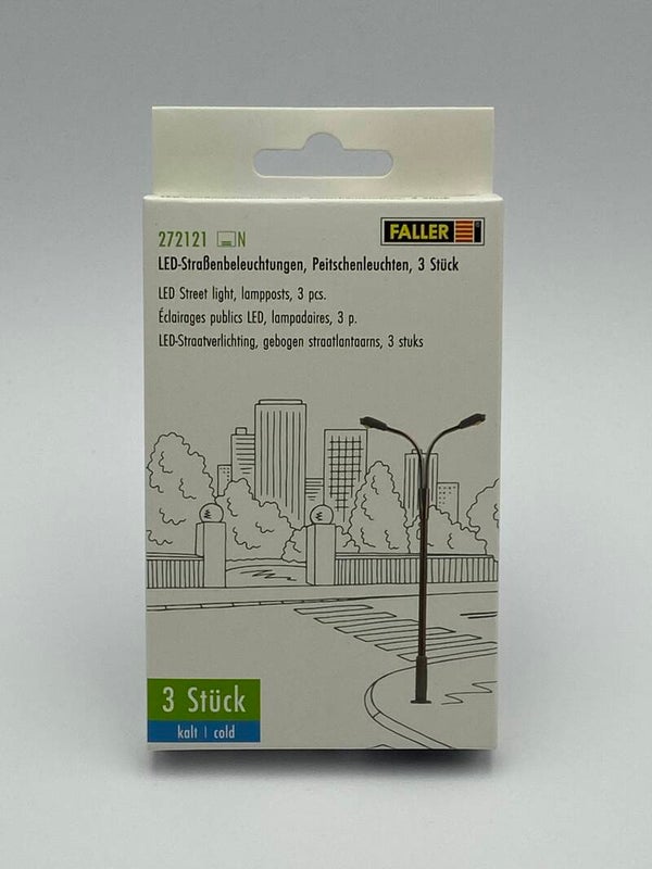 Faller 272121 LED-Strassenbeleuchtungen, Peitschenleuchten, kaltweiss, 3 Stück