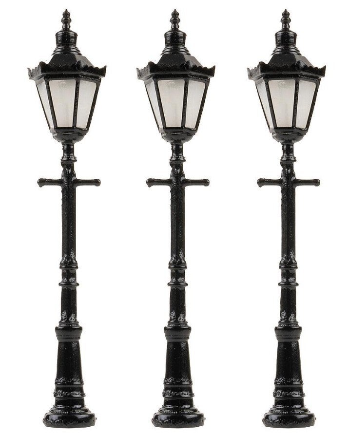 Faller 272128 LED-Parklaterne, Sechskantlaterne mit Krone, warmweiss, 3 Stück