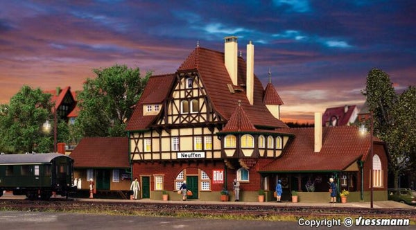Der Bahnhof Neuffen ist ein typischer Landbahnhof. Er ist Endstation der Nebenlinie Nürtingen-Neuffen und steht am Fuß der Burgruine Hohen-Neuffen auf der Schwäbischen Alb. Das kurz vor der Wende zum 20. Jahrhundert errichtete, stilechte Bahnhofsgebäude ist im Modell mit allen Details nachgebildet.