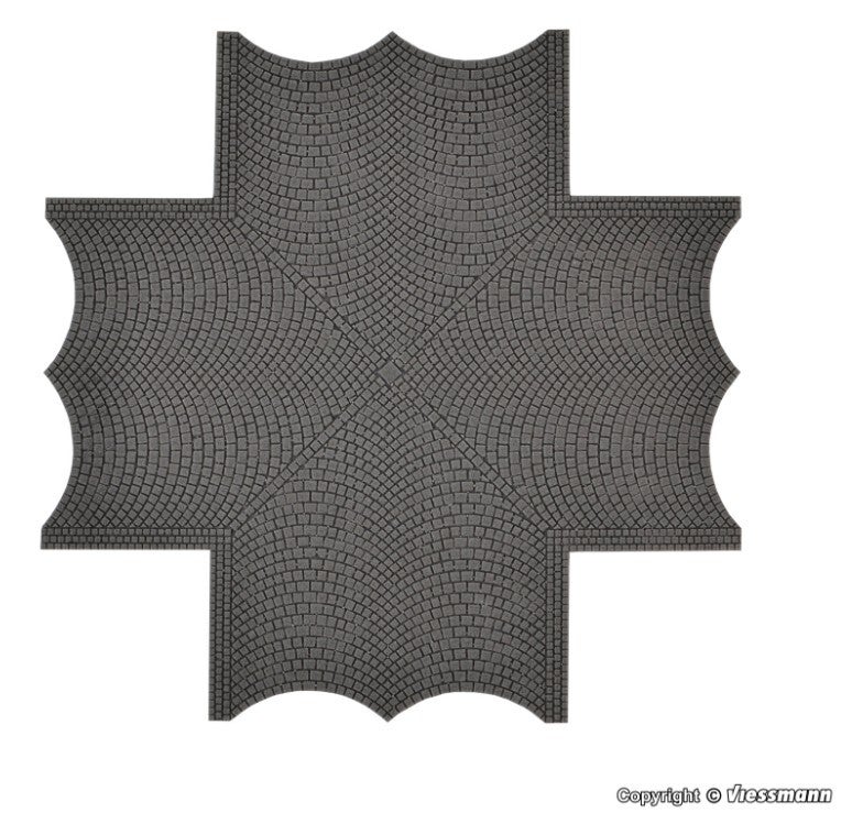Vollmer 48241 H0 Strassenplatte Kopfsteinpflaster aus Steinkunst, X-Kreuzung, L 15 x B 15 cm