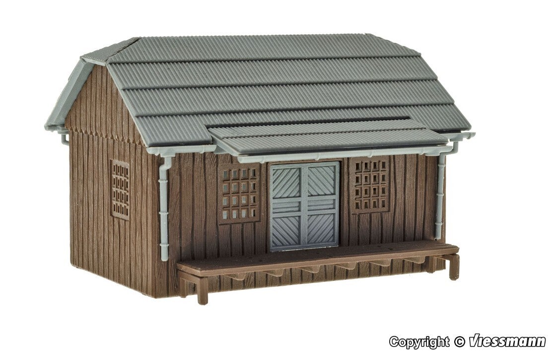 Dieser kleine Güterschuppen ist ideal zum Umschlagen und Aufbewahren von Gütern in überschaubarer Menge und passt hervorragend an eine Nebenstrecke.