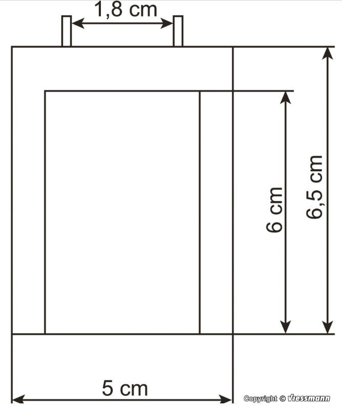 Maße: L 5 x B 3 x H 6,5 cm. Fahrbahnhöhe 6 cm / Fahrbahnbreite 1,8 cm.