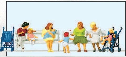 Preiser 10522 Sitzende Frauen, Kinderwagen, Bänke
