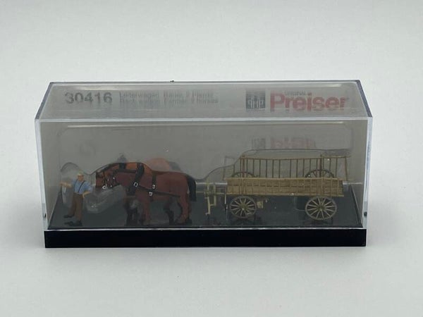 Preiser 30416 Leiterwagen, Bauer, 2 Pferde