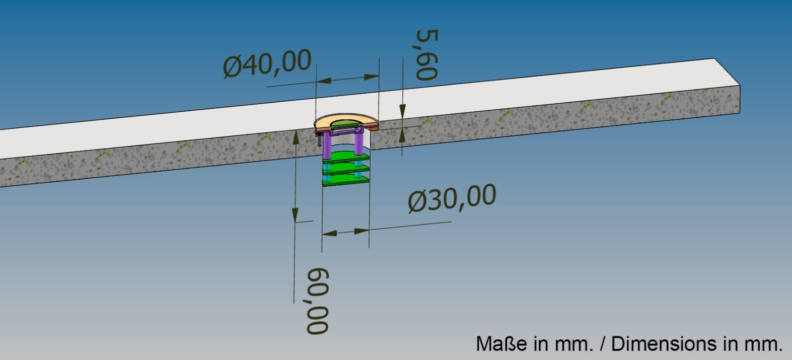 Durchmesser Ladespule: 40 mm, Durchmesser Elektronik: 30 mm, Höhe: 60 mm