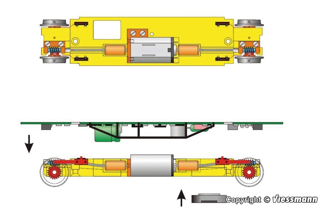 Der selbstfahrende Niederbordwagen ist ideal geeignet, um bei Lokomotiven, die keine Motorisierung besitzen, im Verbund den Antrieb zu ersetzen. Die DB hat zwischen 1958 und 1967 mehr als 14 200 2-achsige Flachwagen mit Seitenwandklappen und klappbaren Stirnborden beschafft. Sie dienten zur Beförderung von Fahrzeugen, z. B. Kaelble Zugmaschinen KV 633/632, und von Gütern mit großem Raumbedarf. Die Wagen ohne Seitenrungen wurden ab 1965 als Kls bezeichnet. Als Modell können sie von Epoche III – VI eingesetzt werden. Eigengewicht 12 100 kg, max. Lademasse 27,5 t, LüP 13 860 mm. Der patentierte Unterflurantrieb, ähnlich wie beim ROBEL, ist der flachen Bauweise des Niederbordwagens optimal angepasst. Bei Langsamfahrt, im Betrieb mit Sound, digital und analog überzeugt dieses Modell den technikbegeisterten Modellbahner. Mit elektrischem Antrieb. Das integrierte Soundmodul gibt die Pfeife und verschiedene betriebsabhängige Geräusche wieder. Digitaldecoder für DCC/MM und Analogbetrieb (AC/DC) mit integriertem Stromspeicher, RailCom-fähig. Ein typischer Diesel- oder Dampfloksound ist per CV auswählbar. An einer Stirnseite befinden sich 2 zweipolige schaltbare Steckbuchsen, an denen z. B. eine Zugschlussbeleuchtung angeschlossen werden kann.