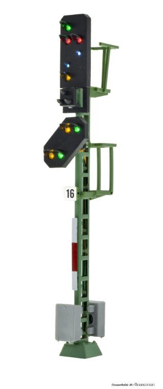 Signal der Einheitsbauart. Messingmast in filigraner Fotoätztechnik hergestellt. Originalgetreue Lackierung. Für alle Analog- und Digitalsysteme geeignet. Mit Steckfuß. Sehr einfache Montage, sehr einfacher Anschluss. Mit 10 LEDs, wartungsfrei. Weiße LEDs für den Signalbegriff Sh1 (Rangierfahrt). Signalbilder Hp0, Hp0/Sh1, Hp1, Hp2, Vr0, Vr1 und Vr2. Passende Steuermodule: Art. 5220 und 5223. Höhe: 7,9 cm.