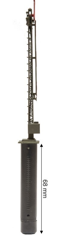 Mit filigranem Gittermast aus Messing in originalgetreuer Lackierung, bedrucktem Signalflügel und Unterflur-Kompaktantrieb mit integrierter Zugbeeinflussung. Wartungsfrei dank LED-Beleuchtung. Signalbilder Hp0 und Hp1. Höhe: 103 mm.