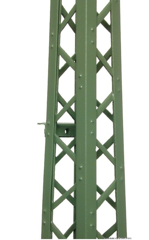 Komplett mit Turmmast, fertig montiert und lackiert. Mit 3 elektrisch getrennten Auslegern. Die Auslegereinheiten sind frei verschiebbar und umklipsbar. Mit rückseitiger Aussparung zur Aufnahme weiterer Ausleger. Filigrane Metallausführung mit eingeprägten Nietenimitationen. Maximale Spannweite: 19,5 cm, Höhe: 17 cm.