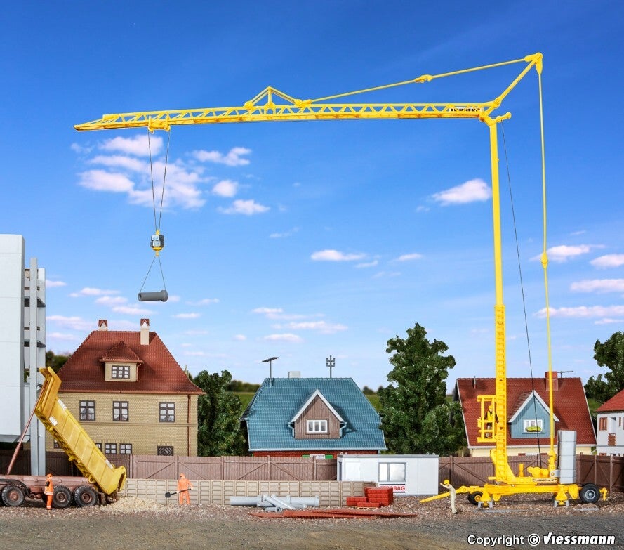 Vorbilddaten: Max. Hubhöhe 20 m, max. Ausladung 24 m, dabei Hubkraft 850 kg, max. Hubkraft 2 t, Transportgewicht 17 t. Dieser Schnelleinsatzkran ist ungewöhnlich mobil, schnell einsetzbar und hat eine hohe Variabilität. Besonders auffällig ist der Teleskopturm in geschlossener Vollwand-Bauweise statt offenem Winkel. Durch diese Turmkonstruktion muss der Ausleger im Transportzustand nicht seitlich eingeklappt werden. Auch entfällt das übliche seitliche Ausklappen und Vorbolzen der Auslegerteile bei der Montage. Er benötigt keine Behelfsstützen und kann sich ohne Hilfsmittel leicht aufgleisen und abspindeln. Der automatisierte Aufstellvorgang macht ihn in kürzester Zeit einsatzbereit. Er wurde für kleinere und mittlere Baustellen konzipiert.