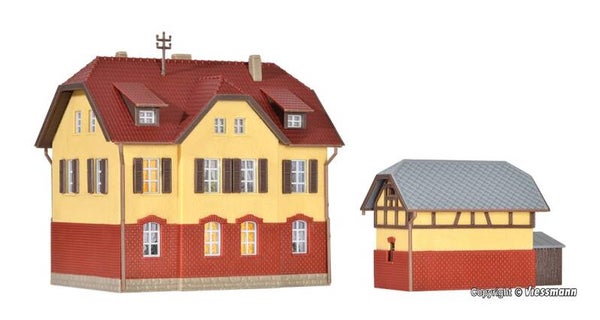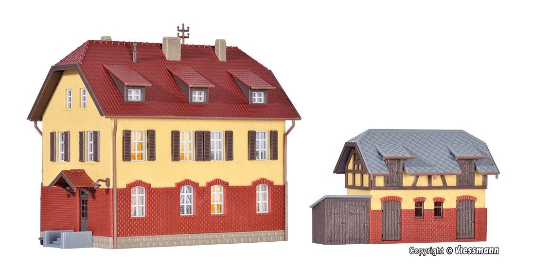 Kibri 37112 N Eisenbahnergebäude mit Nebengebäude inkl. Hausbeleuchtungs-Startset