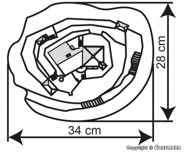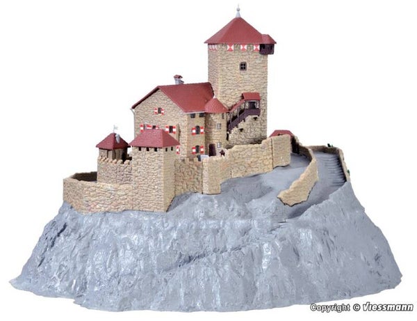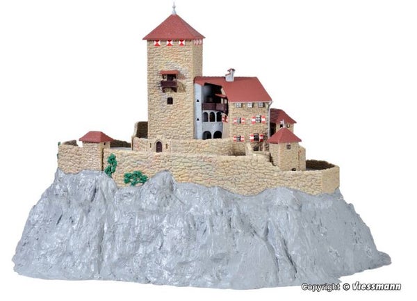 Die Burg Branzoll liegt am Südhang des Säbener Bergs unterhalb des Klosters Säben und etwas erhöht über dem Stadtzentrum von Klausen in Südtirol (Italien). Diese Burg ist ein echter Blickfang auf der Modellbahnanlage. Ob dezent im Hintergrund oder auf Augenhöhe in der Nähe des Betrachters – dieser Bausatz macht überall eine gute Figur. Mit Berg.