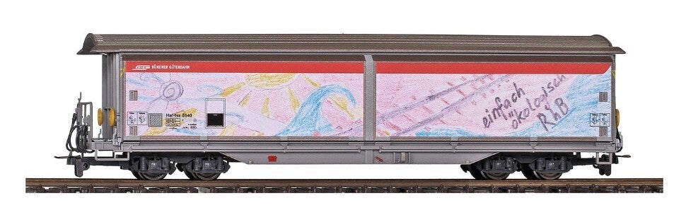 Beim Bahnfestival 175 Jahre Jubiläum der Schweizer Bahnen wurde während der beiden Ausstellungstage in Landquart ein Zeichenwettbewerb gestartet. Rahel (12), Emma (13) und Nadja (40) haben mit ihren Zeichnungen das Rennen gemacht und einem Güterwagen zu einer neuen weithin auffälligen Gestaltung verholfen. Ihre Interpretationen zum Thema „nachhaltige Transporte“ schmücken nun den Hai-tvz 5140 „Bündner Güterbahn“.