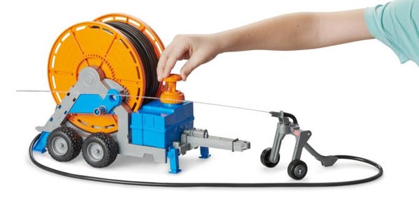 Ob Sportplatz, Baumschule, Obstwiese oder andere große Flächen, überall wo eine gleichmäßige und konstante Wasserversorgung notwendig ist, haben Beregnungsanhänger ihren Einsatzort. Diese wichtige Maschine für eine erfolgreiche Landwirtschaft, gibt es neu im umfangreichen Sortiment von BRUDER. Über die, mit einer Kurbel betriebenen Schlauchrolle, können Nachwuchs-Landwirte einen 1,8 Meter langen Schlauch abrollen, an dem eine detailgetreuer Spritzwagen befestigt ist. Getreu dem BRUDER Motto „Just like the real thing“ ist ein Tank mit funktionierender Pumpe montiert. Mit dem Pumpsystem lässt sich spielend einfach und realitätsnah Wasser verteilen. Dieser spannende Beregnungsanhänger kann von allen BRUDER Traktoren aus der Themenwelt Landwirtschaft gezogen werden.