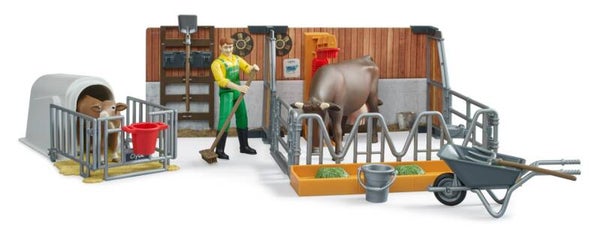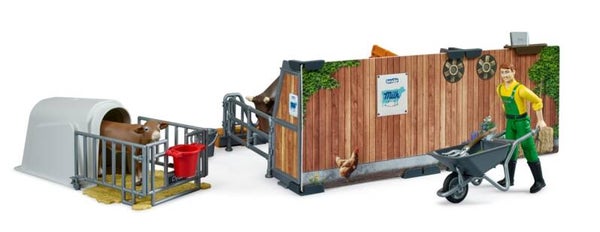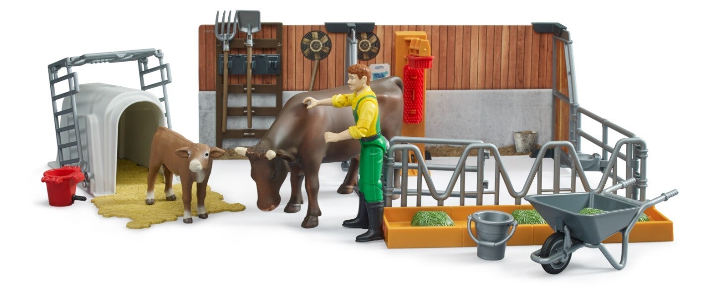 Bruder 62611 bworld Kuh- und Kälberstall mit Landwirt, Kuh und Kalb