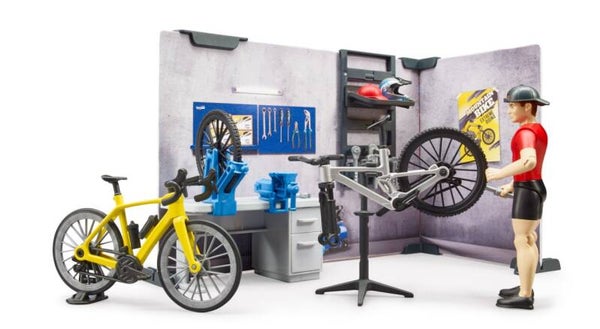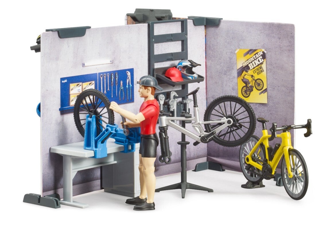 Bruder 63120 bworld Fahrrad Shop und Werkstatt mit Figur und Fahrräder