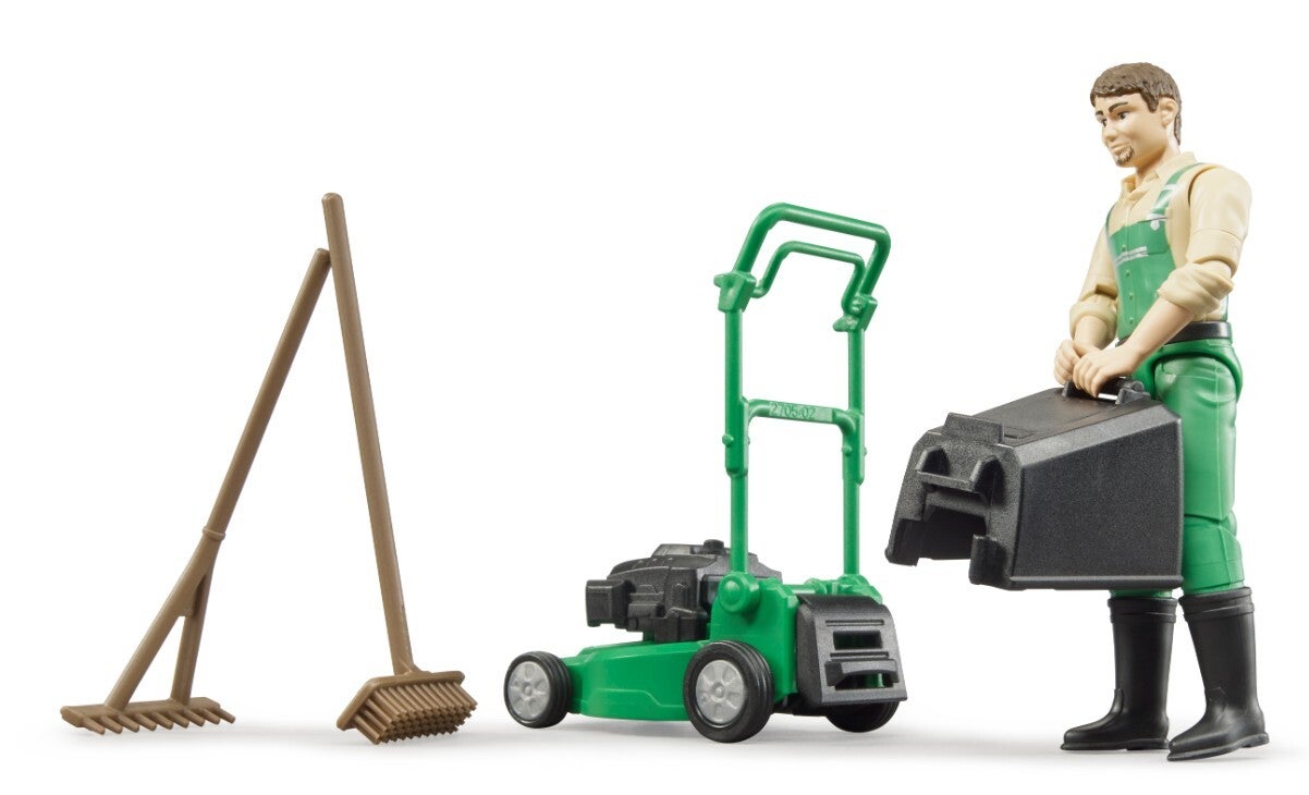 Bruder 62103 bworld Gärtner mit Rasenmäher und Gartengeräten